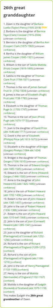 👉 That makes Elizabeth Grey Jane’s paternal aunt and just happens to be my 13th Great Grandmother.