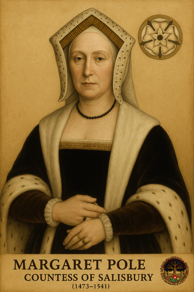 Margaret Pole (1473–1541) was the daughter of George, Duke of Clarence, niece of Edward IV and Richard III, and one of only two Tudor-era women to hold a peerage in her own right. Henry VIII created her Countess of Salisbury in 1513 and she became a powerful, conservative-Catholic magnate and governess to Princess Mary. After her son Reginald Pole denounced Henry’s religious policies from abroad, the government struck at the Pole family. Parliament attainted Margaret in May 1539; after two years’ confinement she was beheaded in the Tower on 27 May 1541—an execution diplomats described as clumsily botched. Beatified in 1886, she endures in memory as a Plantagenet matriarch destroyed by Henrician politics. Ursula Pole (c.1504–1570), Margaret’s only daughter, married Henry Stafford (later 1st Baron Stafford) on 16 Feb 1519. She survived the 1538–41 purge that killed her brother Montagu and her mother, and through her many children—especially Dorothy Stafford, a senior attendant to Elizabeth I—Ursula’s line stayed close to the Elizabethan court. She died 12 Aug 1570. —